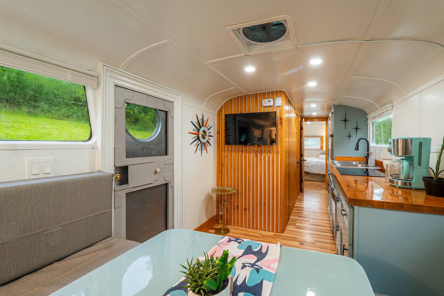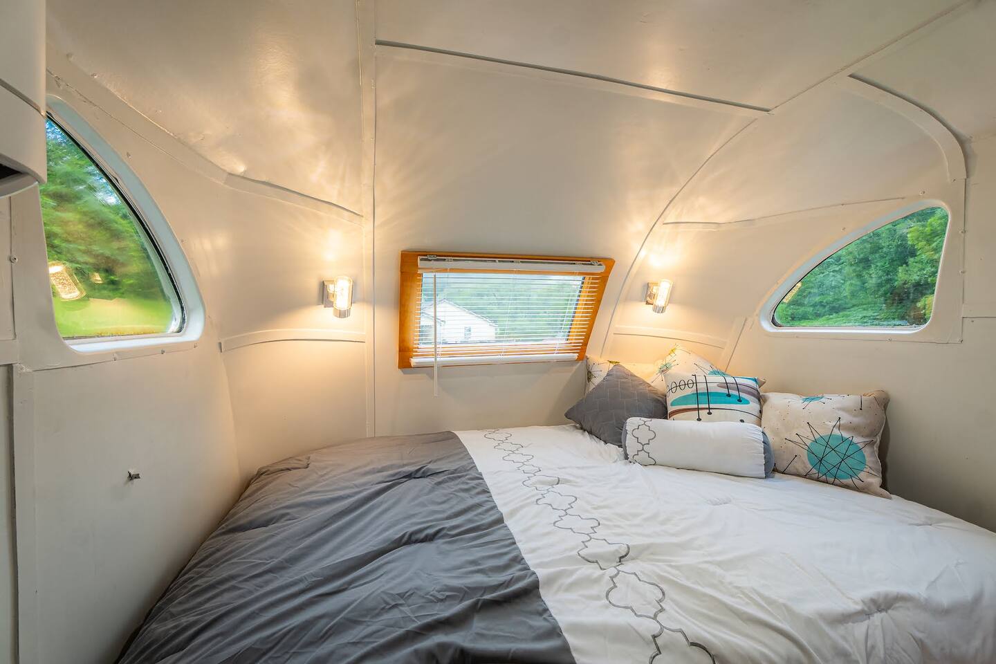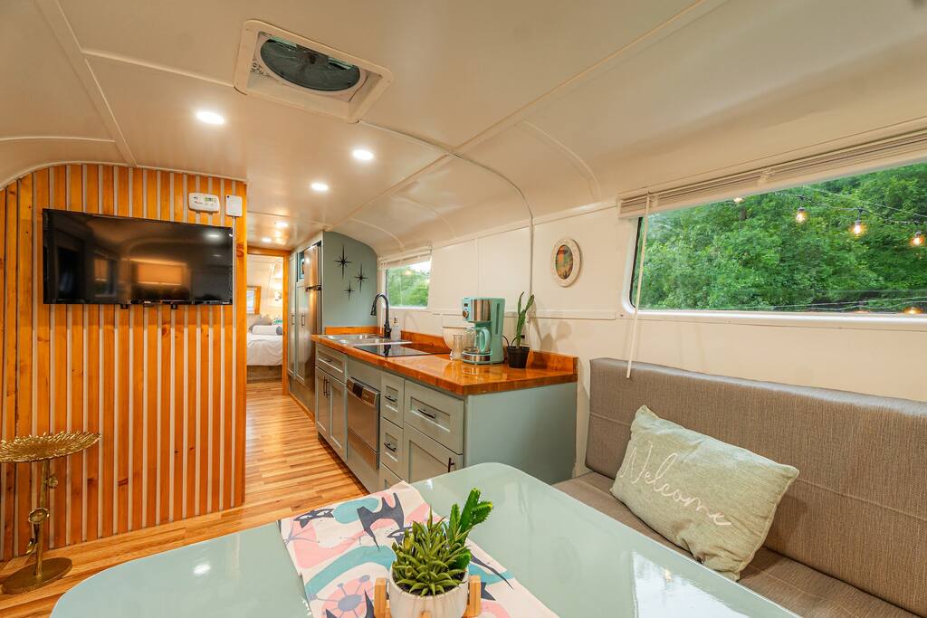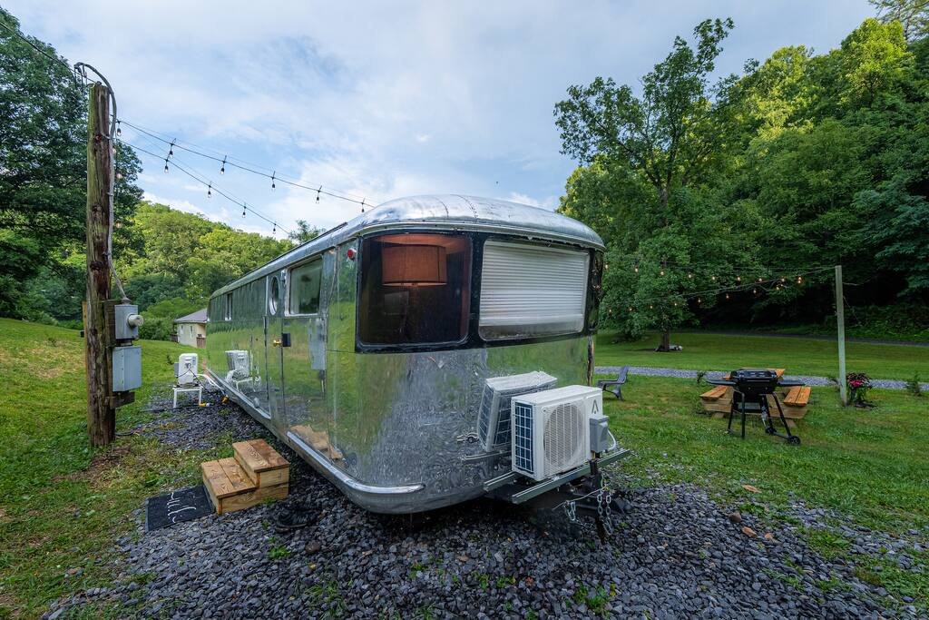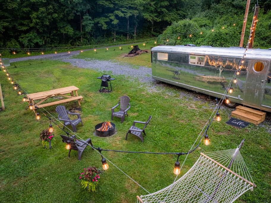 Set deep in a "holler", a one way valley between mountains, The 48 is a totally renovated 1948 Spartan camper, which predates Airstream. Make some coffee and enjoy it between the mountains before headed out for hiking, rafting, or climbing. The cozy interior has a midcentury modern feel, modern appliances, and a tankless water heater for long luxurious showers. The table converts to a queen size bed with 6" mattress + topper. PS If you shop at big and tall, this may not be the one for you.