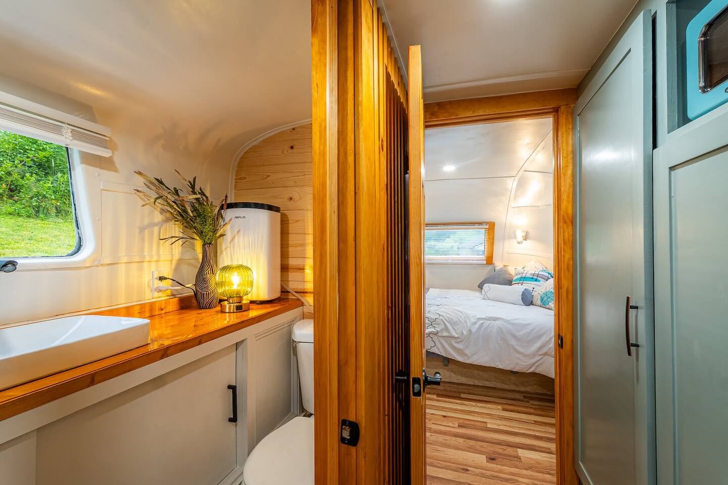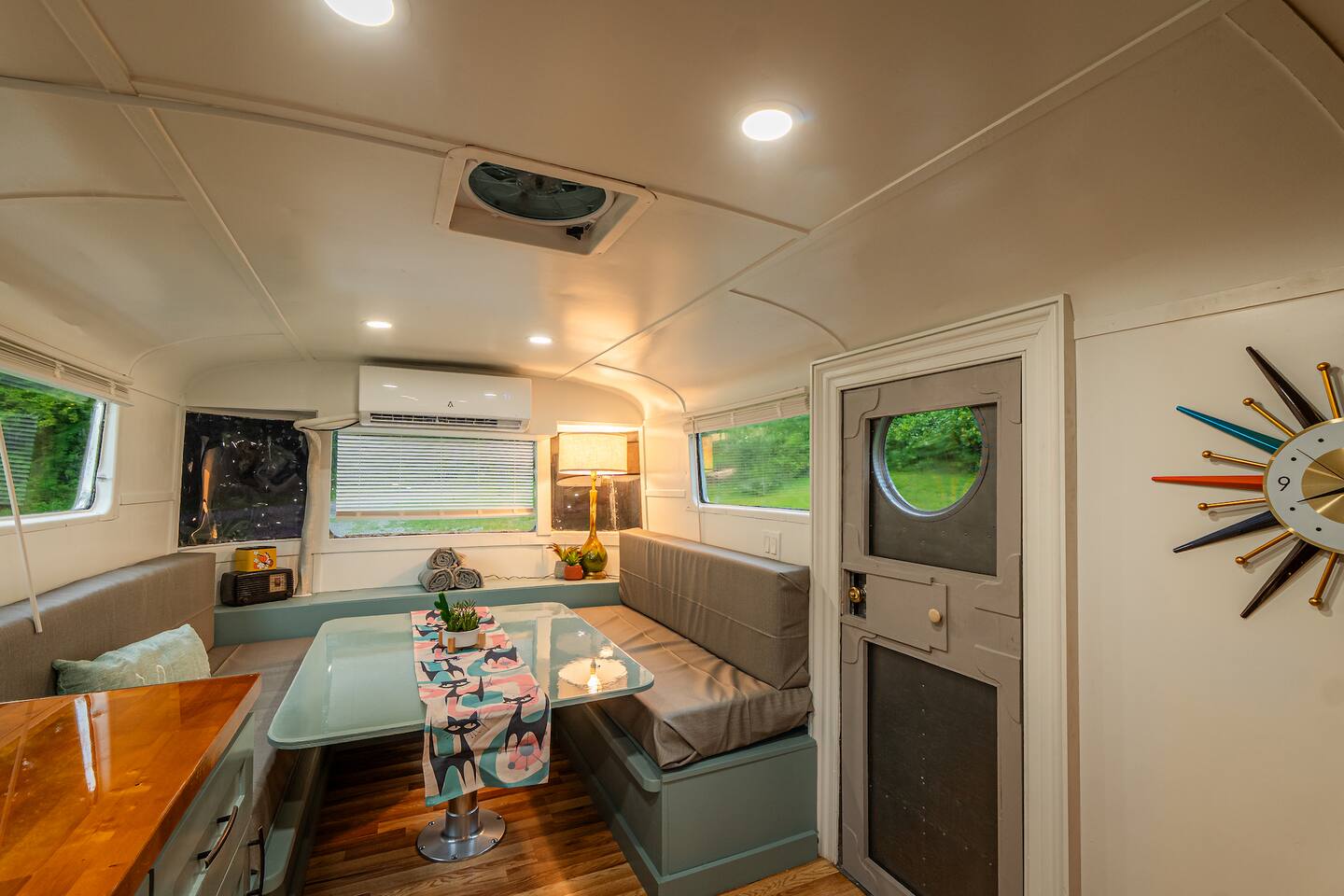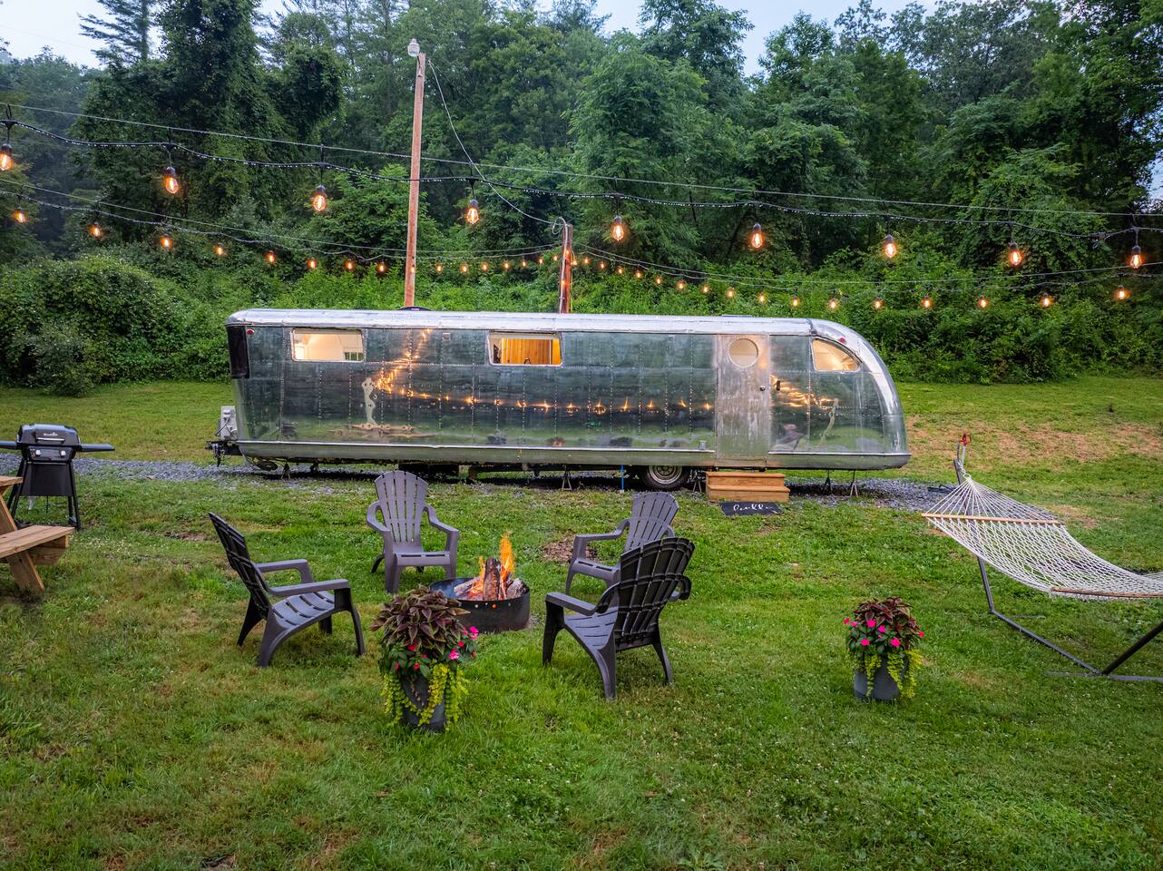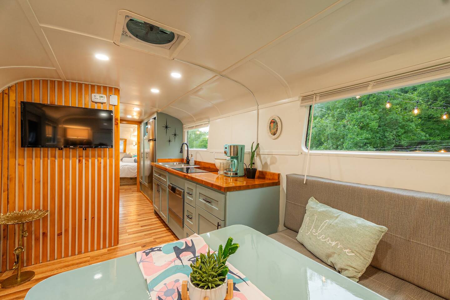 Set deep in a "holler", a one way valley between mountains, The 48 is a totally renovated 1948 Spartan camper, which predates Airstream. Make some coffee and enjoy it between the mountains before headed out for hiking, rafting, or climbing. The cozy interior has a midcentury modern feel, modern appliances, and a tankless water heater for long luxurious showers. The table converts to a queen size bed with 6" mattress + topper. PS If you shop at big and tall, this may not be the one for you.